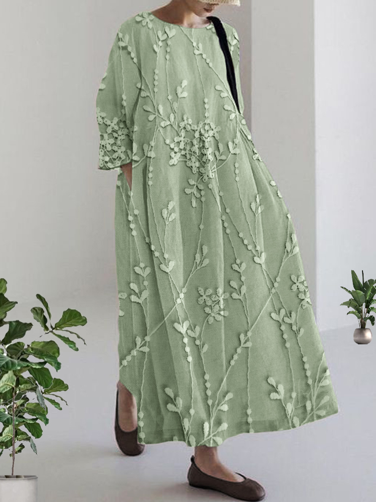 Classy Floral Lace Embroidered Linen Blend Maxi Dress